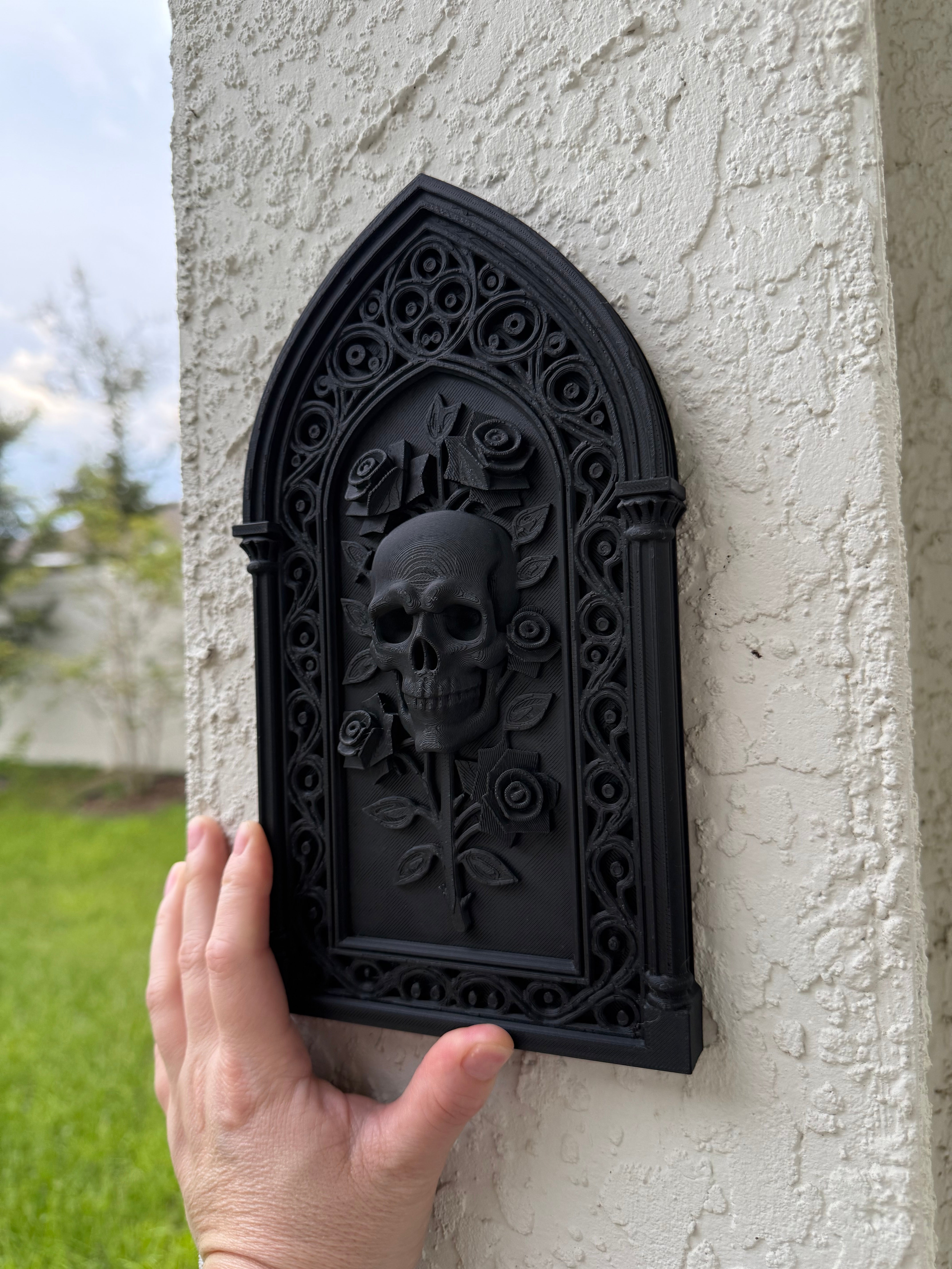 Gothic Window Skull & Roses Wall Decor