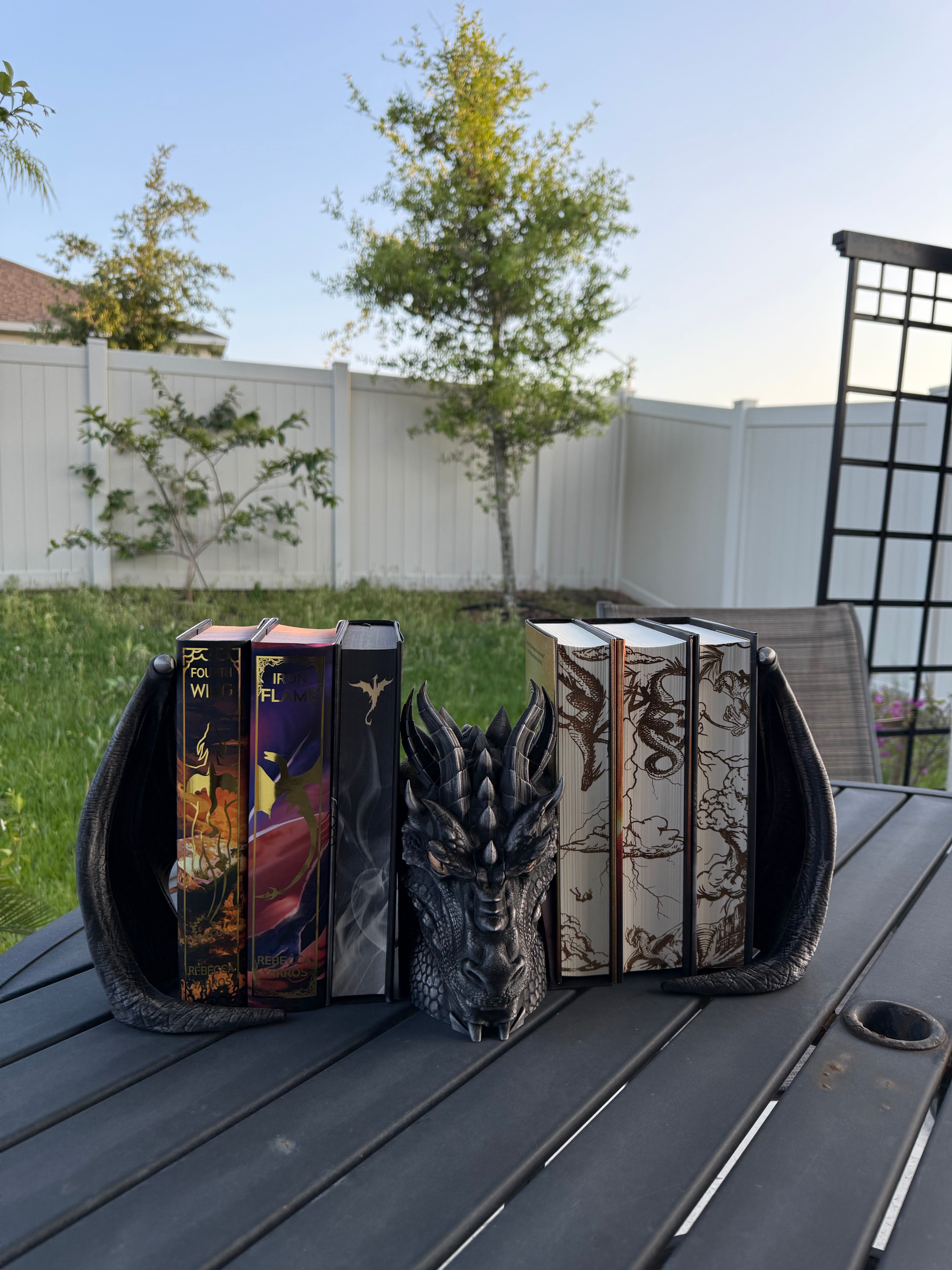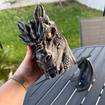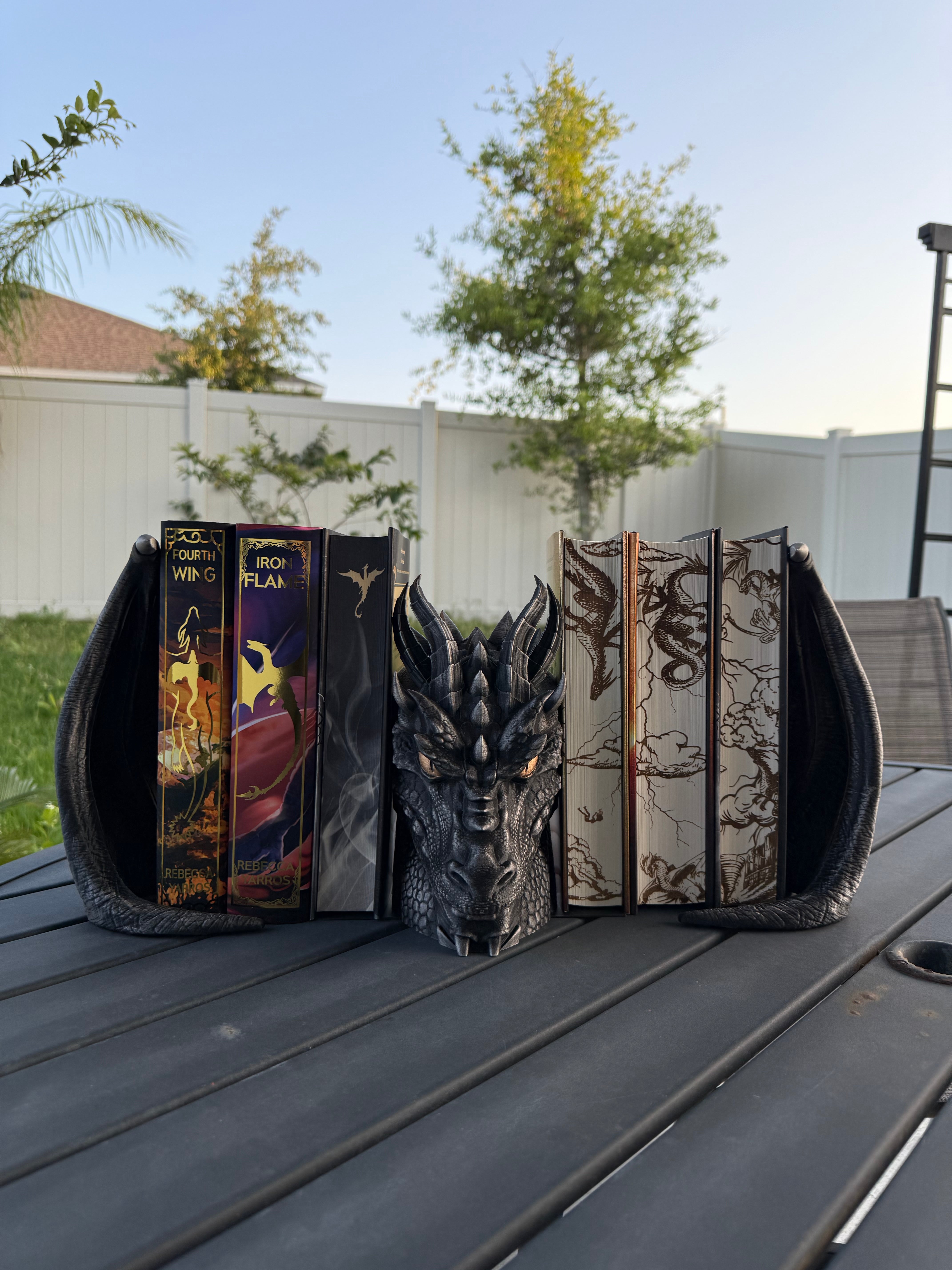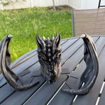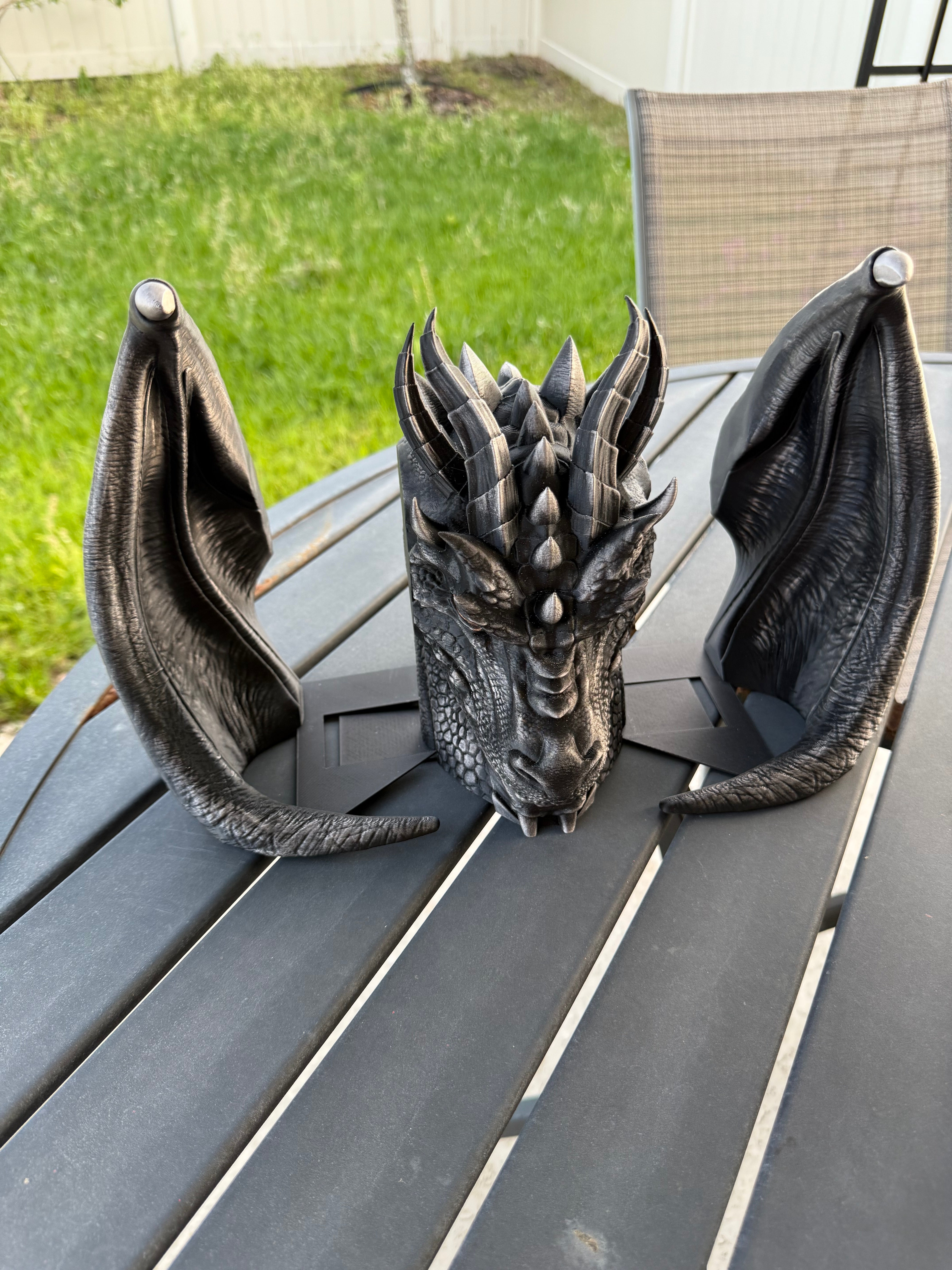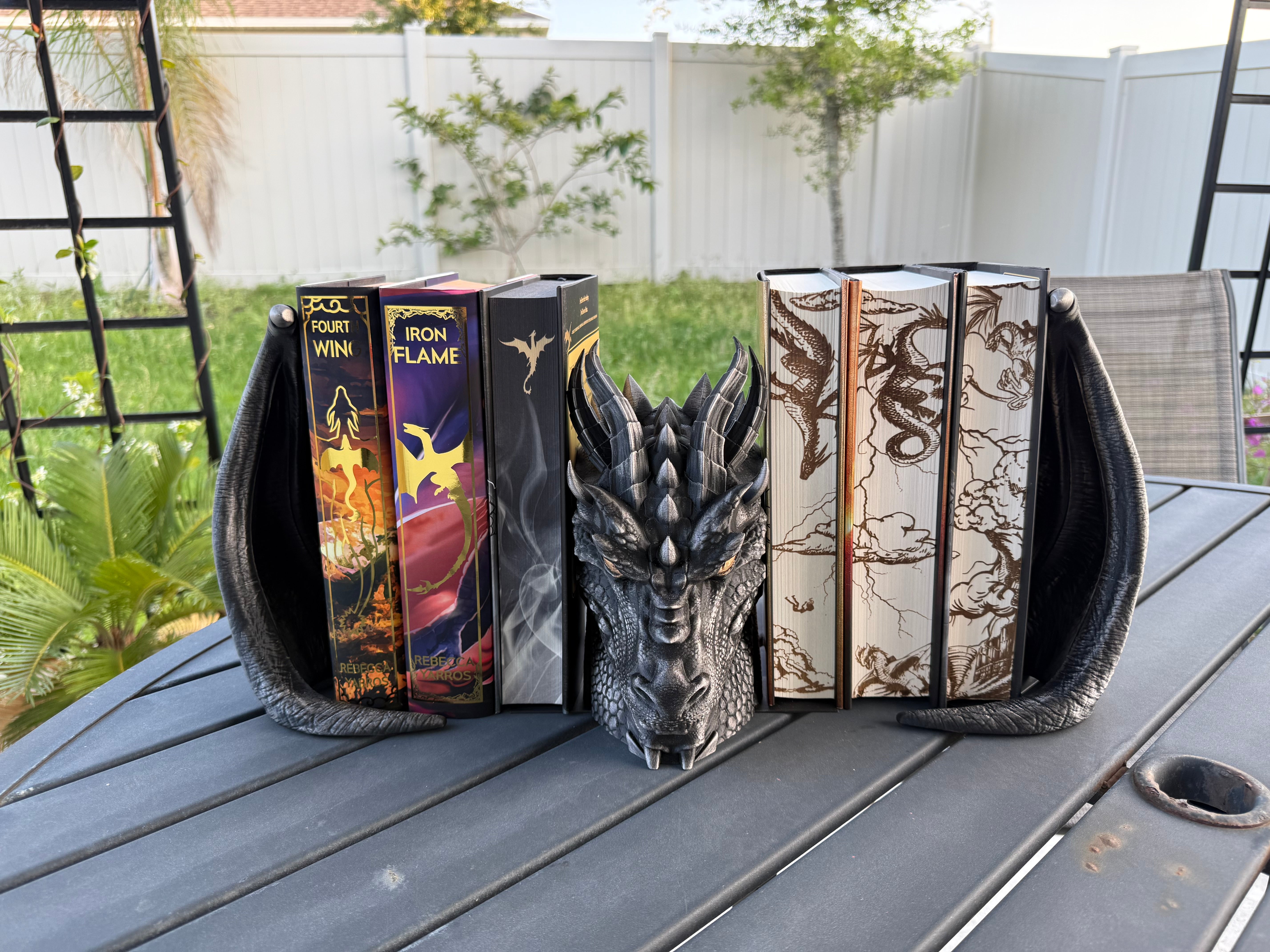 Dragon is printed in Black with Pewter was finish, Gold finish for the eyes. I only have a few color options in the drop down menu because darker colors work best with the wax finish, but if there is any color you are wanting that's not listed, please reach out. :)